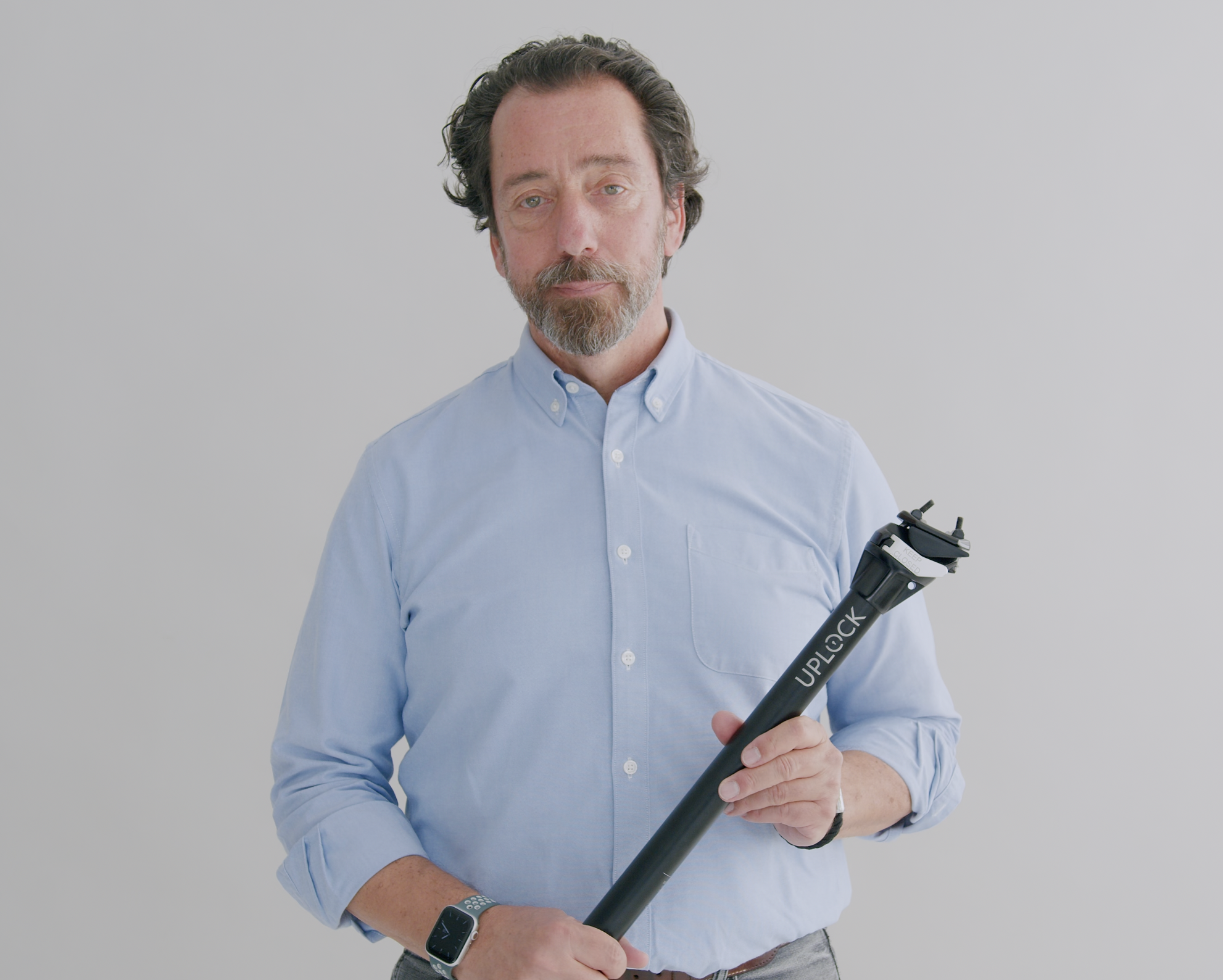 In das Uplock-Schloss-Konzept hat Uli sein ganzes Ingenieur-Wissen gepackt, seine Vorstellungen von Ästhetik, Optik, Haptik, Form und Materialien, sein „Out of the box“-Denken. Das Ergebnis ist ganz anders als alle Schlösser am Markt – denn man sieht es erstmal nicht: Es versteckt sich in der Sattelstütze.
